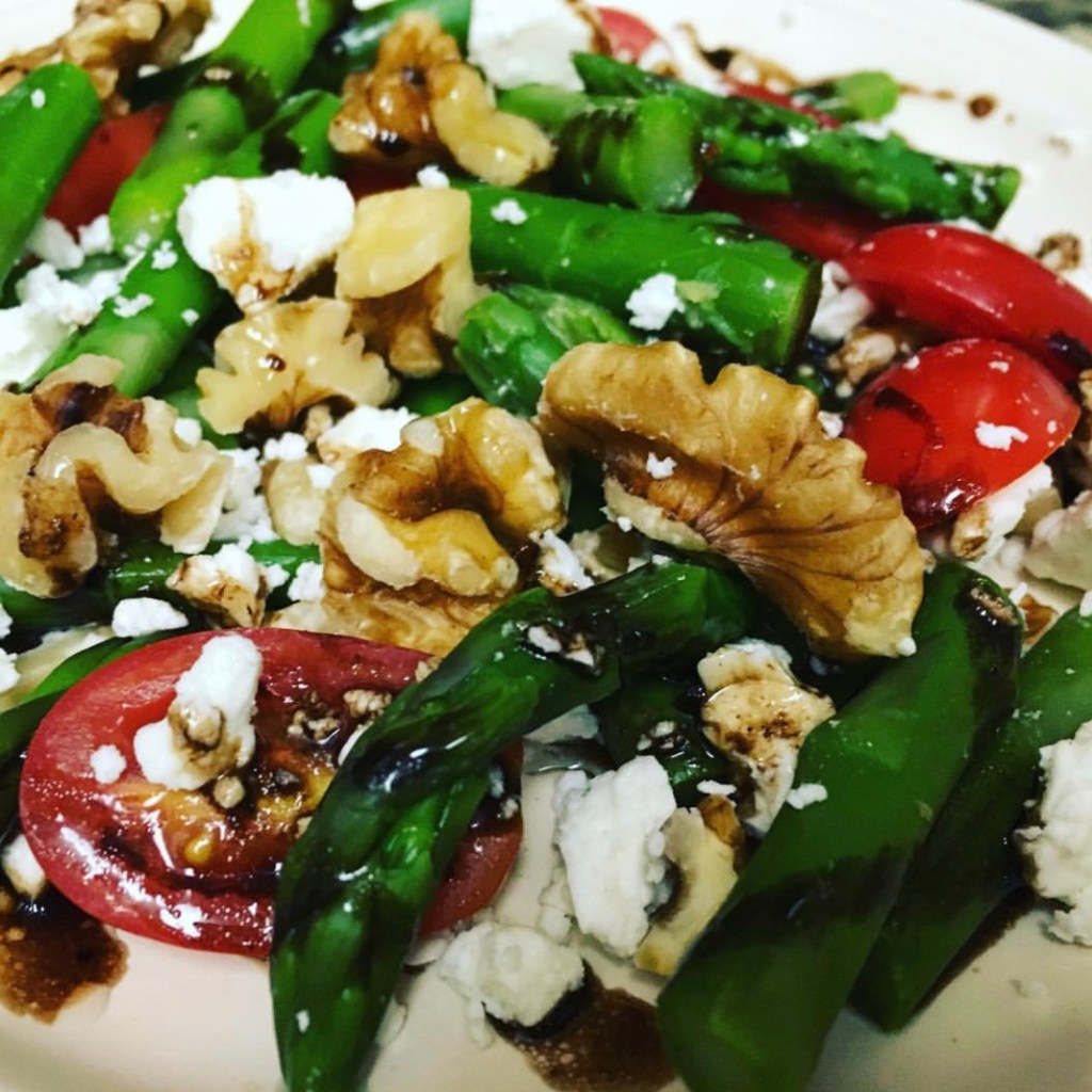 Add asparagus to boiling water and allow to boil until tender crisp, about 4 – 5 minutes.