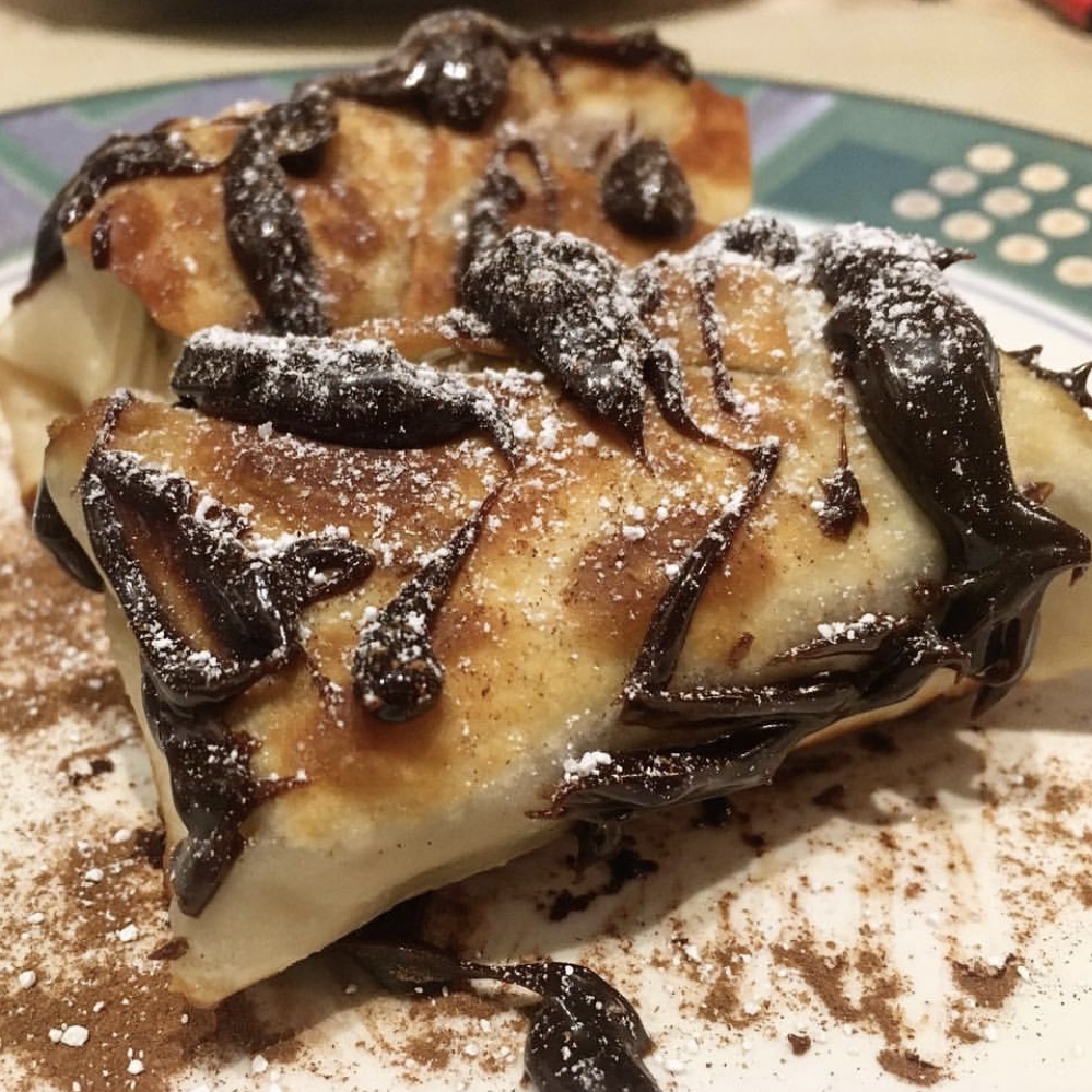 Serve spring rolls with ice cream and a drizzle of your favorite sauce (I used chocolate).