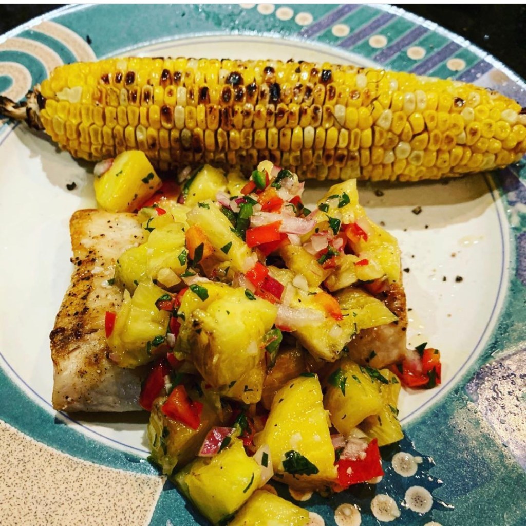 Place Mahi Mahi on plate. Top with lemon butter sauce, and then pineapple salsa. Serve with your favorite vegetable.