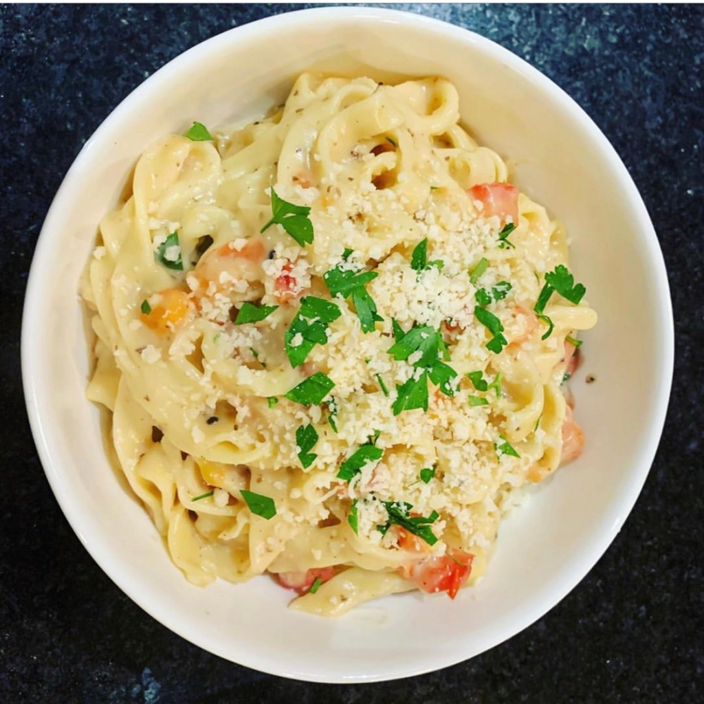 This is one of my all-time favorite meals that I have made. This dish was so packed with flavor, that I almost felt guilty for eating a full bowl of it. I had to remind myself that it is a much healthier version of Fettuccini Alfredo. Feel free to add chicken to the dish for some protein. When I went to Italy in 2019, I was introduced to truly fresh homemade pasta, and I absolutely fell in love. Since returning to the states, I’ve learned how to make my own homemade pasta. It has become a game changer with my homemade meals. I have different Kitchen Aid attachments that help me cut the pasta into fettuccini, spaghetti, pasta sheets, bucatini, fusilli, rigatoni, small macaroni and large macaroni.