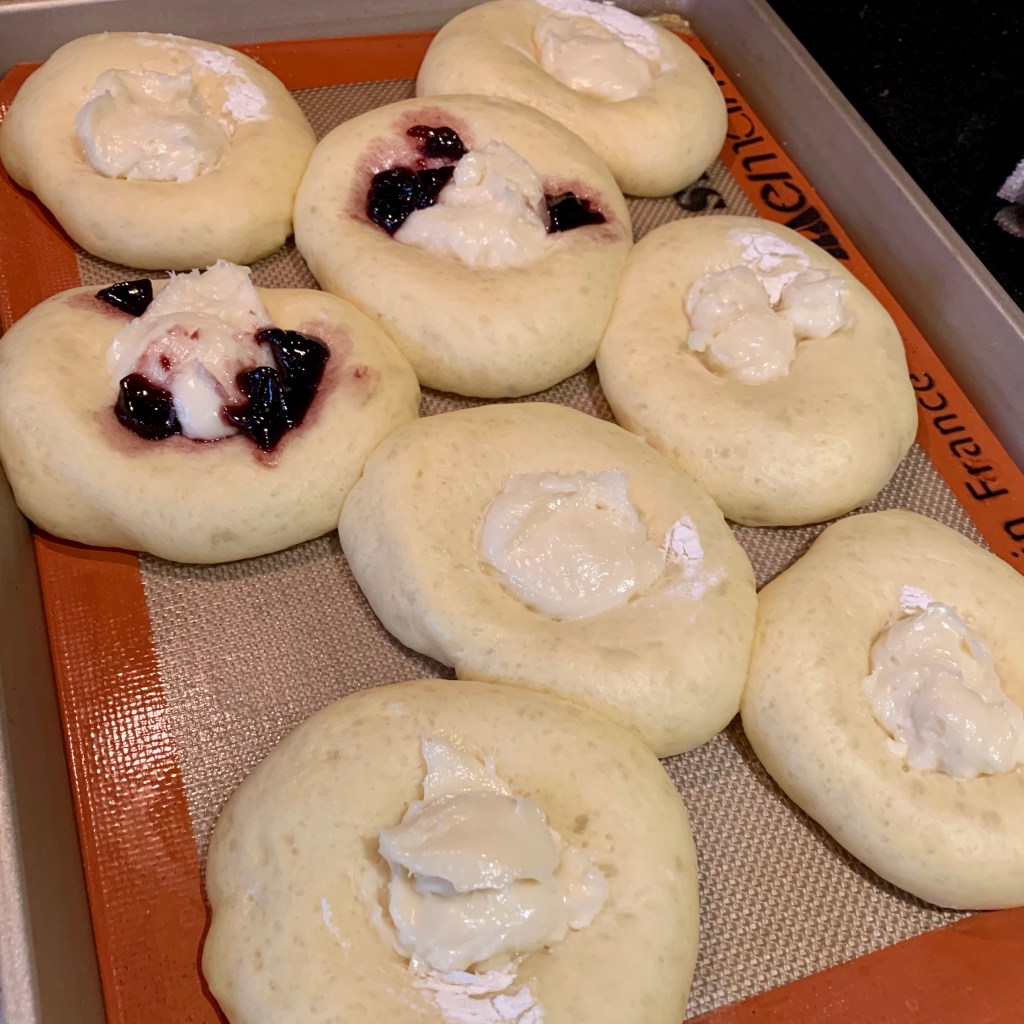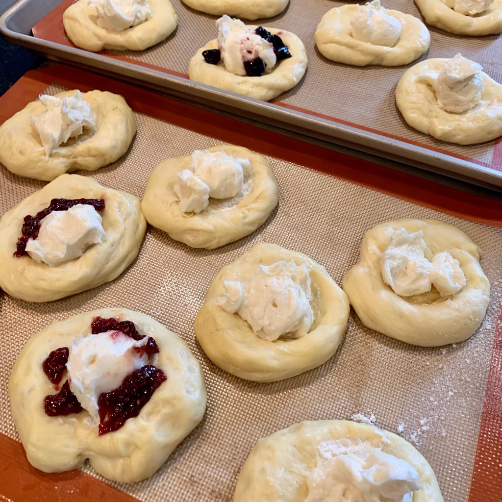 Let rise until doubled: Put the baking pan with the filled danishes back into the oven (with the heat off, oven light on). The danishes should double in size in about 30 minutes to 1 hour.