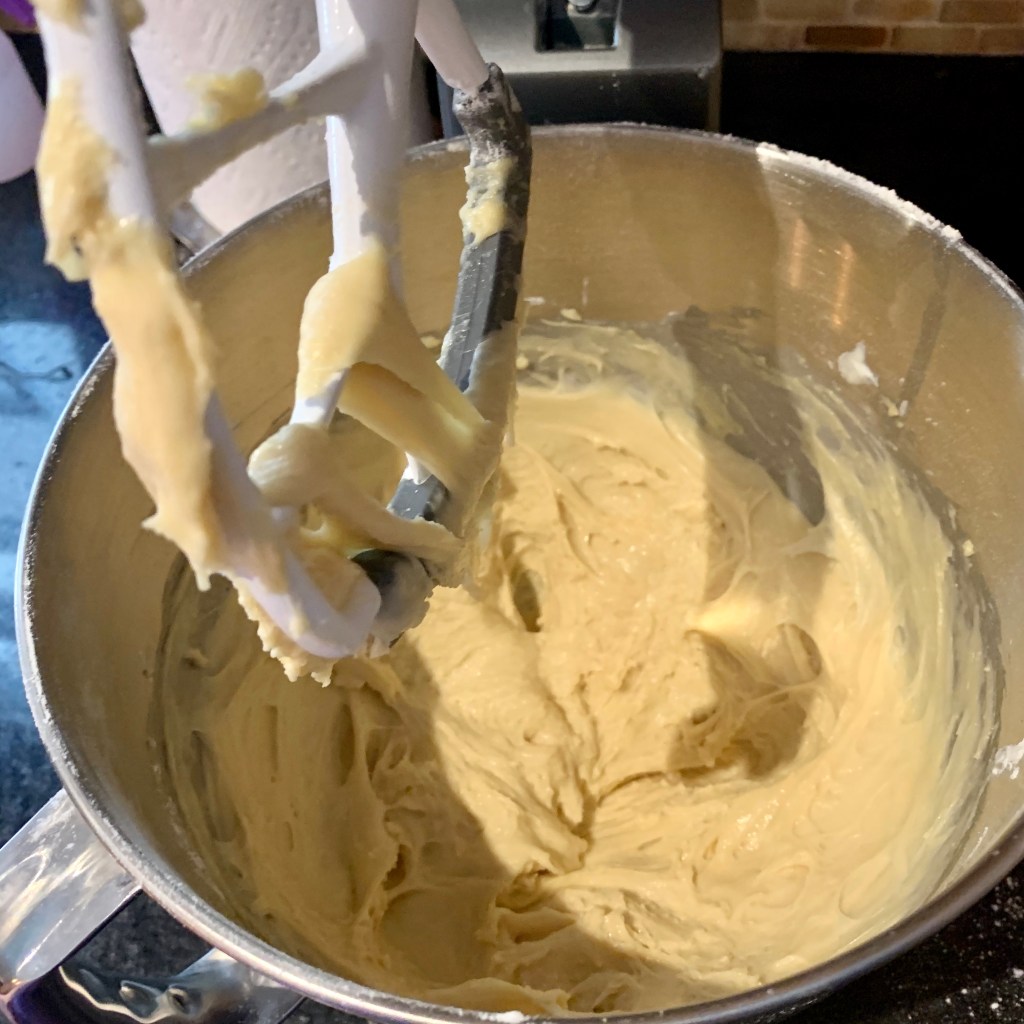 Make the Pastry Dough: In a bowl of a stand mixer mix the 1 cup of warm milk, 1/4 teaspoon kosher salt, 4 egg yolks, 2 tablespoon of sour cream, 1/3 cup of sugar, 2 teaspoon of dried active yeast, and 3 cups flour together on the 3rd speed of a mixer for about ten minutes.