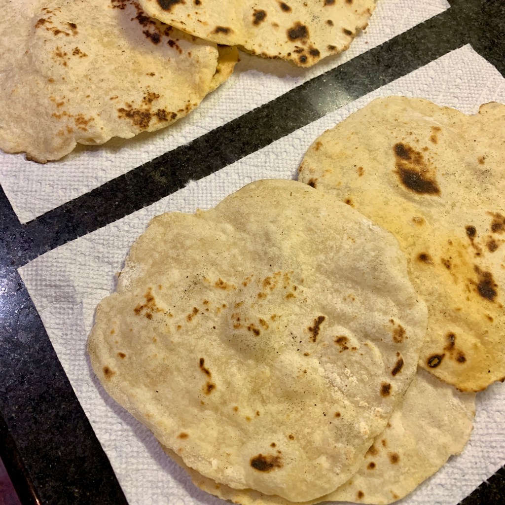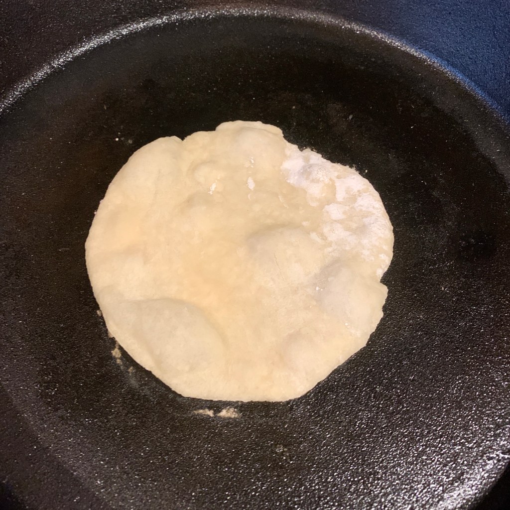 Bye, bye store bought tortillas. These are very easy to make, just slightly time consuming. They do require attention so you don’t accidentally burn them when they are cooking. If your pan is big enough, cook two at a time. I cook these in my cast iron skillet, but they can also cook in a non-stick pan. You can cook these before the rest of your meal so it’s less stressful to time everything correctly.