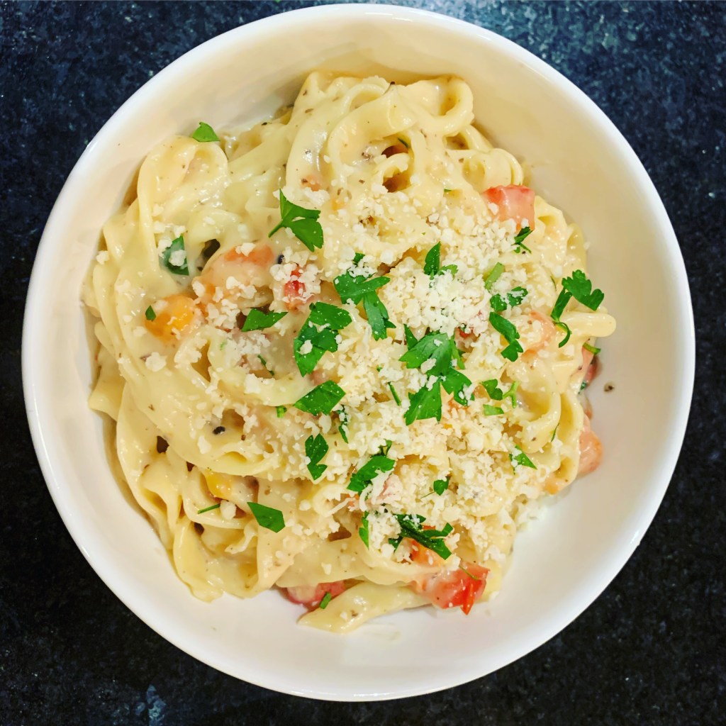 I cook healthier versions of dishes that have bold flavors and fresh ingredients. These are all homemade pastas.